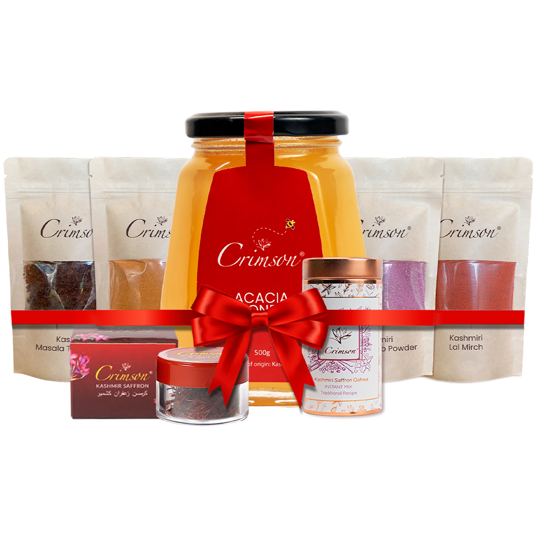 This combo brings together wellness, aroma, and royal Kashmiri flavors in one elegant pack. Ideal for Diwali gifting, corporate hampers, or making every festival meal special. The combination of honey, saffron, qahwa, and premium spices ensures that your dishes are colorful, flavorful, and healthy, while every sip and bite carries the rich tradition of Kashmir.